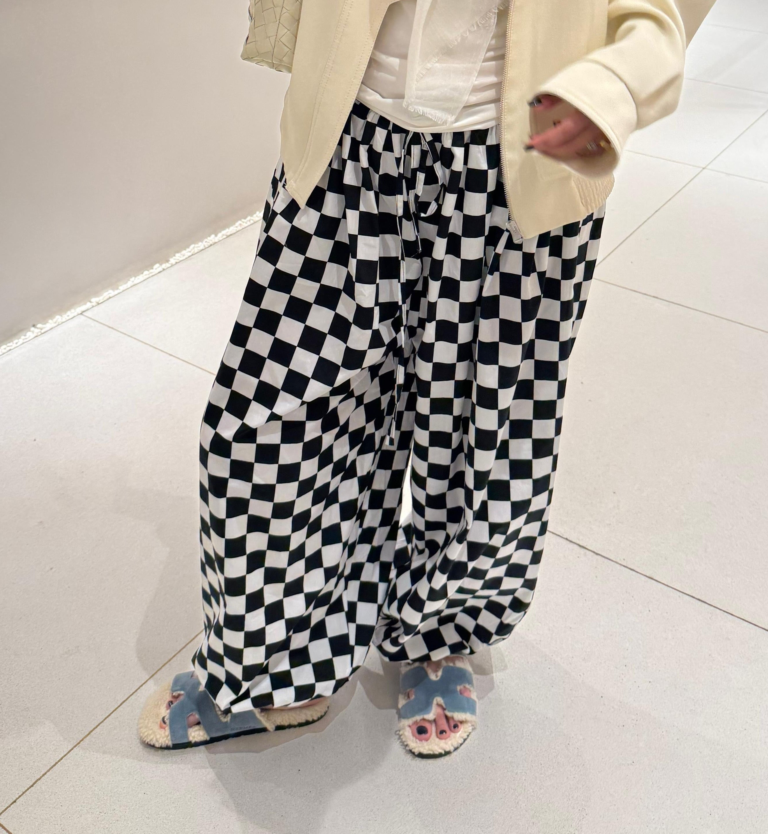 Lightweight, wide-leg balloon pants with a relaxed fit and drawstring waist.