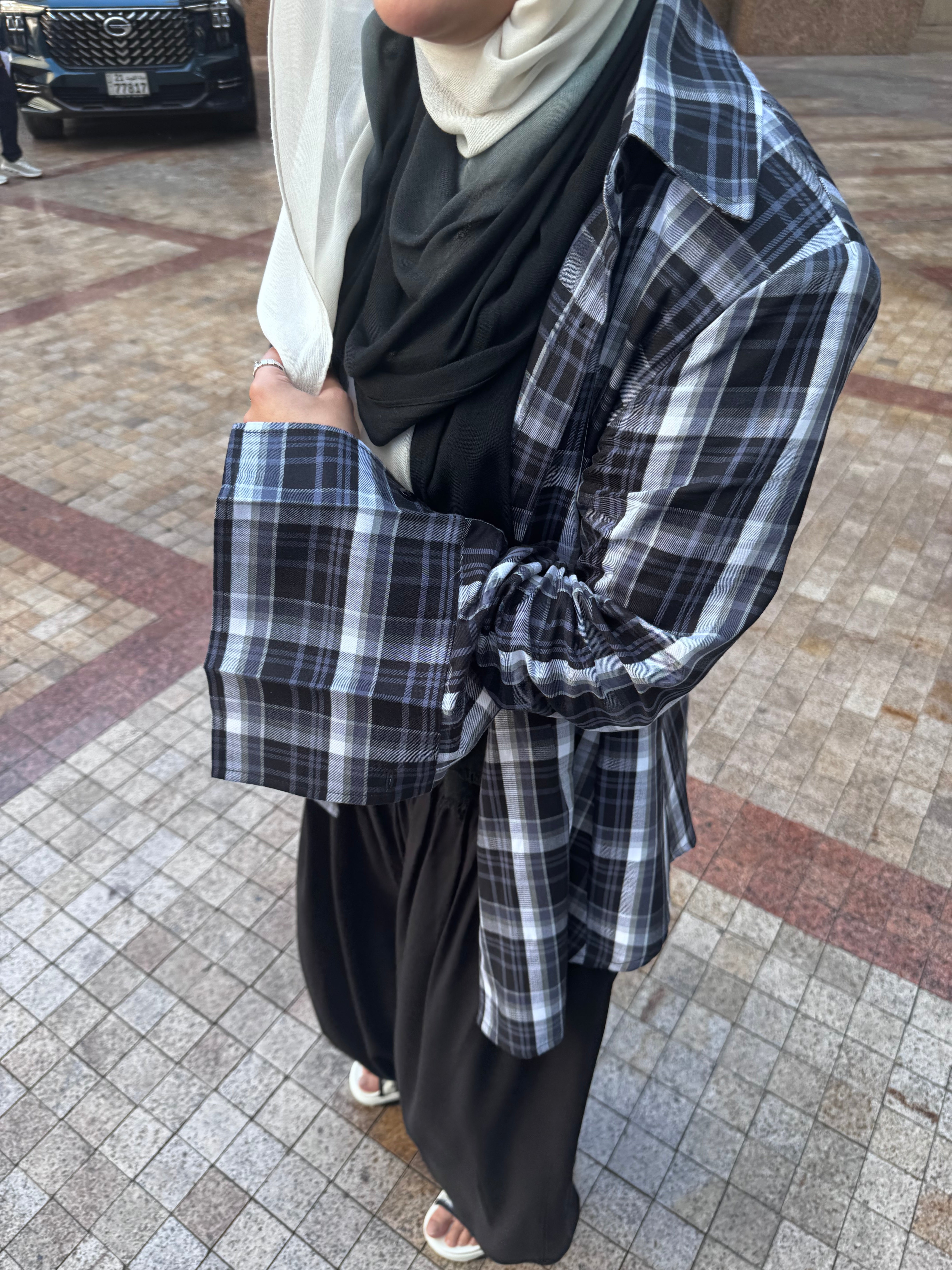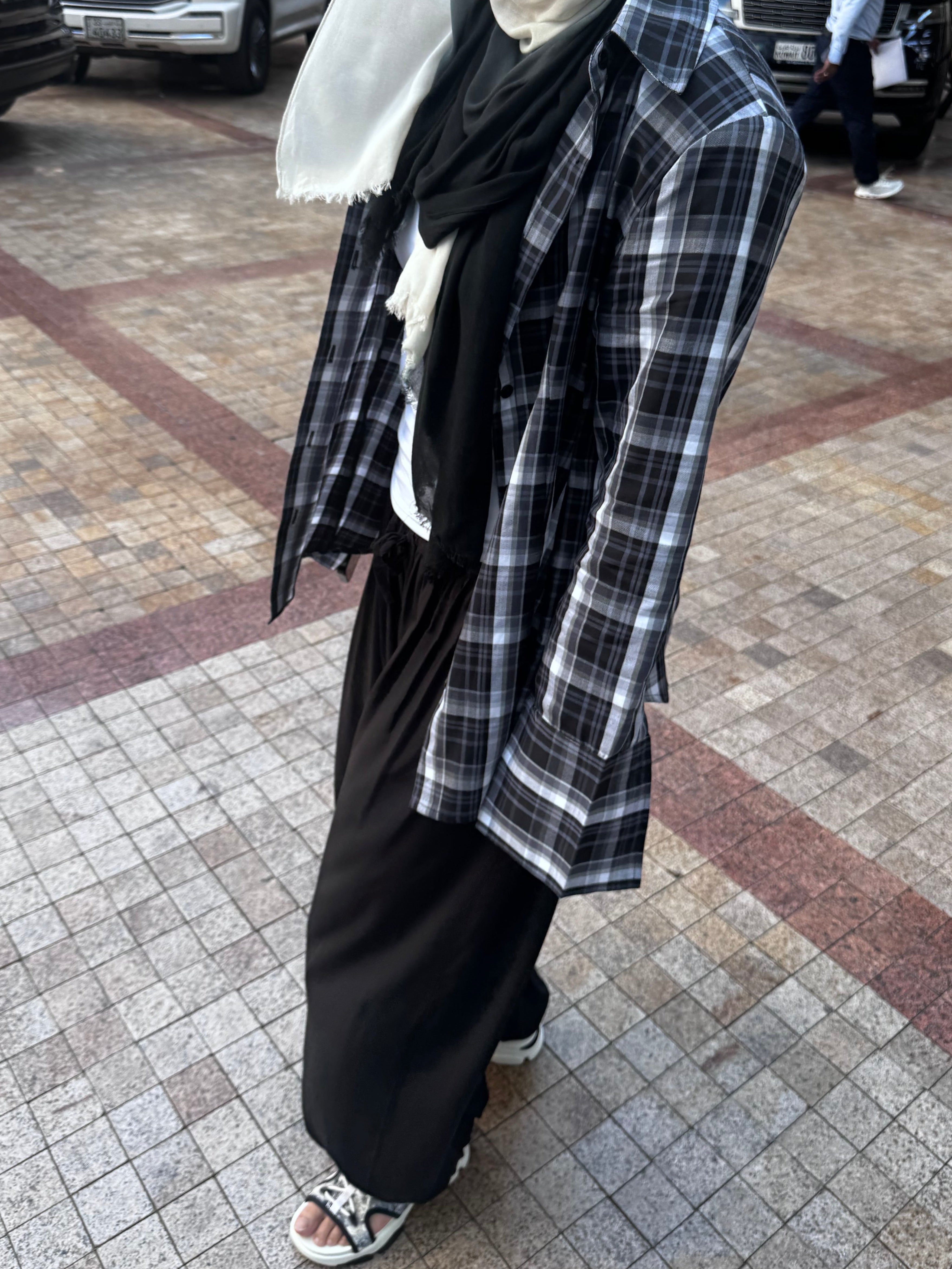 A softly structured check shirt with padded shoulders, designed for a clean, sculpted silhouette. Effortless, modern, and versatile for everyday styling.